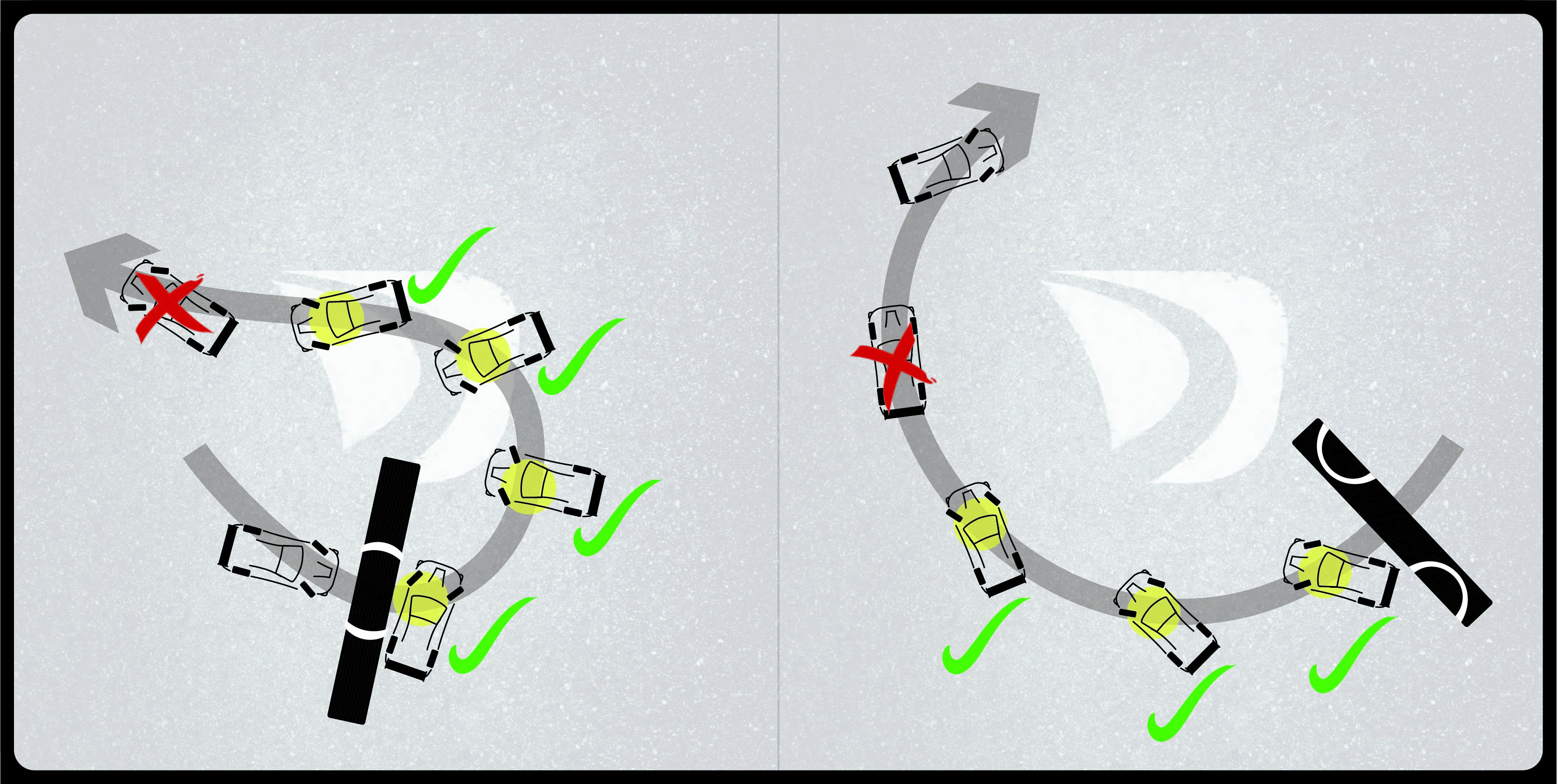 With 180 SPEED and 360 ANGLE you get up to five measuring points each. The scoring will be aborted if you fall below a drift angle of 10°. The points collected so far will be retained.