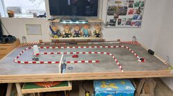 Ich hab einfach mal drauf losgeklebt. Wollte hauptsächlich n bisschen Geraden, und ne große Kurve wo man mal bisschen ausprobieren kann ohne dass man gleich wo drin hängt. Die etwas unvorteilhafte Form is mir im Nachhinein auch aufgefallen, aber es lässt sich ganz gut fahren und das war mir wichtig 😅